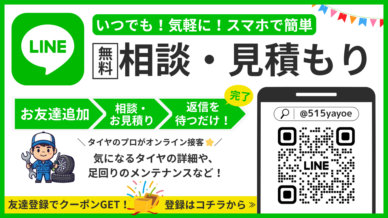 タイヤは安全にかかわるとても重要なパーツだからこそ、どんな些細なことでもご相談ください♪