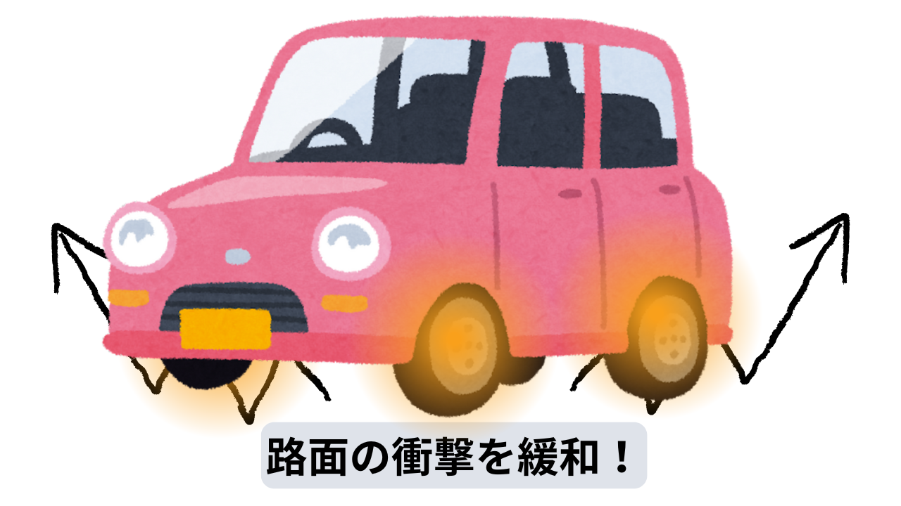 路面の凹凸によって発生するノイズや衝撃を吸収し、緩和する役割。