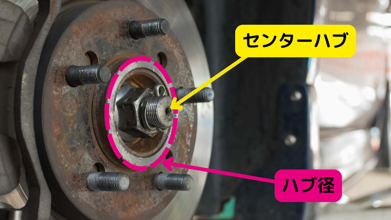 ハブ径:車体側の出っ張り(ハブ)部分の直径のこと