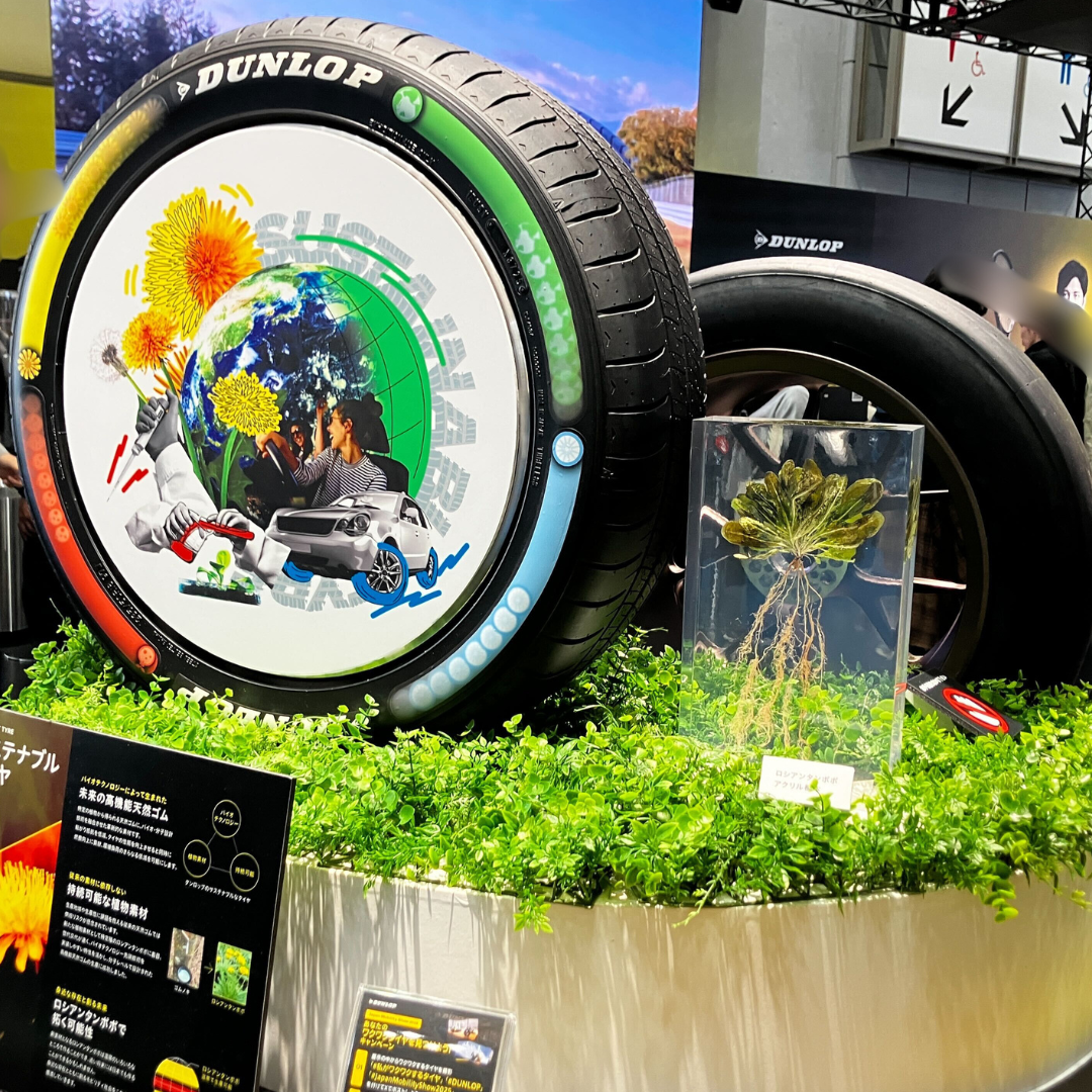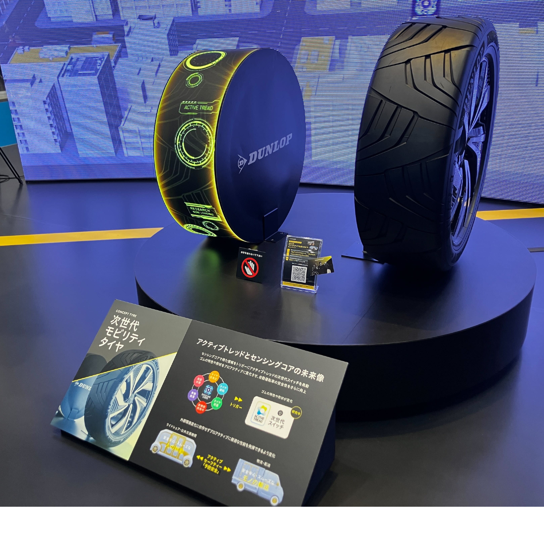 ダンロップでは、独自技術の「アクティブトレッド」の紹介や次世代モビリティタイヤのコンセプトが展示されていたり、発売後も話題が続くオールシーズンタイヤである「シンクロウェザー」の展示がされていました。