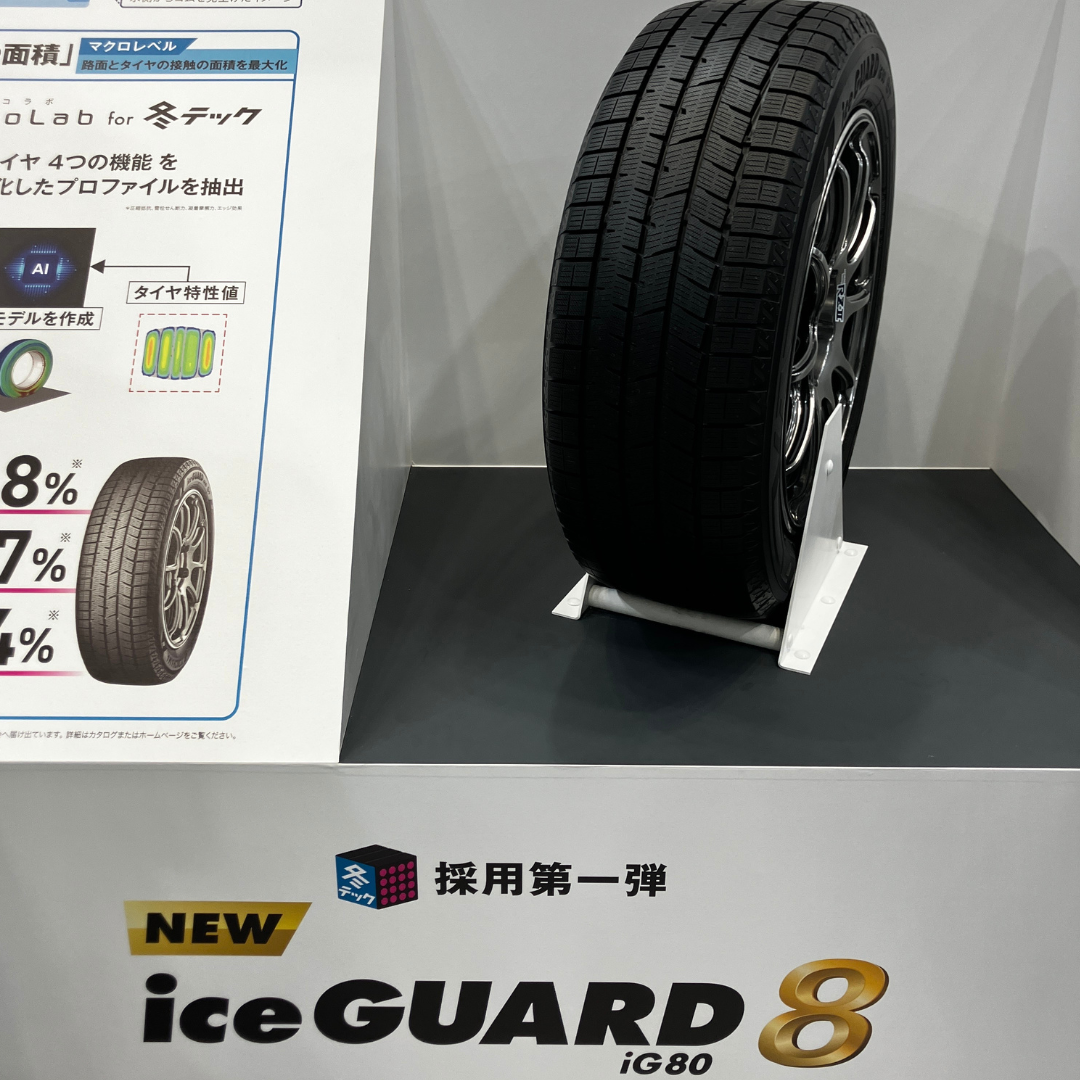 ヨコハマタイヤでは、今期注目のスタッドレスタイヤ「アイスガード8」が展示されており沢山のお客様が注目されていました。