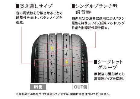 モータースポーツで培った技術により、ウェット路面に対する追従性を向上させグリップを高める素材である「アクアパウダー」と「ウェット向上剤」を採用した「LX Aqua Techゴム」によりウェット性能が大幅に向上しました。