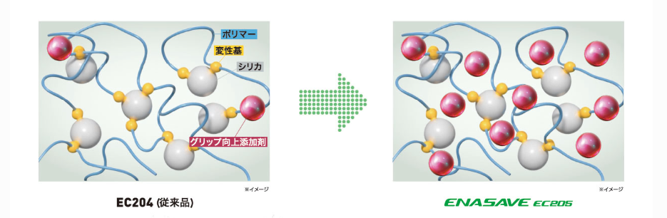 旧モデル同様に低燃費性能とロングライフ性能が維持されつつ、新たに雨の日の安全性能が確保されたタイヤとなりました。